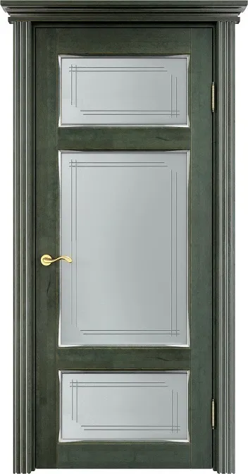 Дверь ПМЦ массив ольхи ОЛ55 зеленый с патиной серебро, стекло 55-4