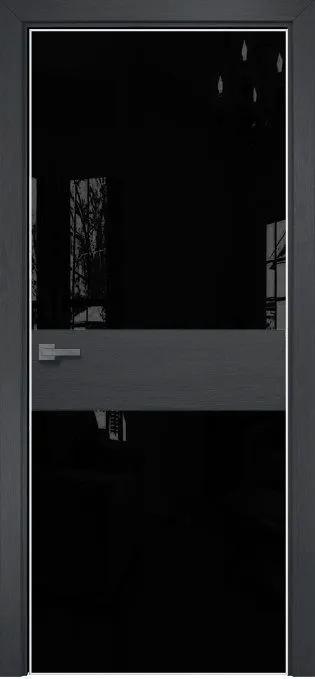 Дверь Оникс Соло 2 дуб графит, глухая, Lacobel RAL 9005