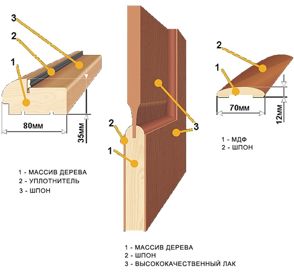 Практичные, экологичные и визуально привлекательные двери шпон, как мы уже сказали, мало чем уступают массиву. Тем не менее есть конструкции массивные, покрытые шпоном, и пустотелые двери. Соответственно, от того, какая технология производства дверей используется, меняются эксплуатационные характеристики изделия и его стоимость. Каркас из бруса, обшитый листами МДФ и заполненный гофрокартоном, стоит дешевле, чем цельный щит из сосновых брусков. А теперь перейдем к методам изготовления.