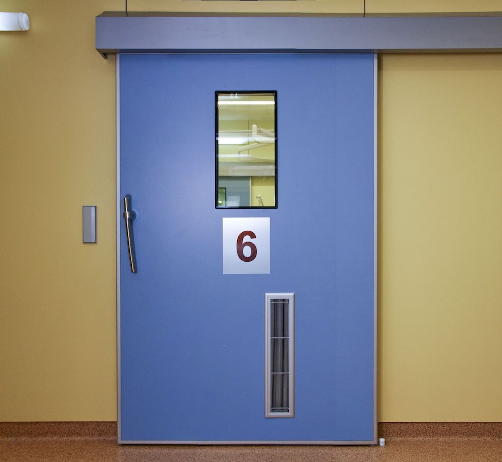 Медицинские двери могут открываться как внутрь, так и наружу, а также иметь автоматический механизм открывания. Например, в операционной двери должны открываться наружу, чтобы можно было быстро вынести пациента в случае необходимости.Закрывание дверей