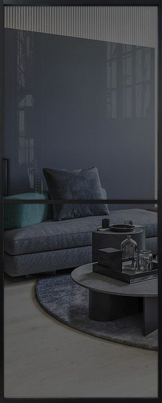 Раздвижная перегородка ALUM №1 черный, стекло прозрачное графит.