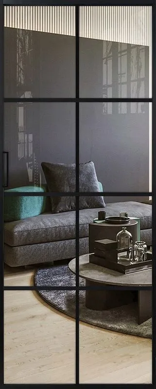 Раздвижная перегородка ALUM №8 черный, стекло прозрачное бронза.