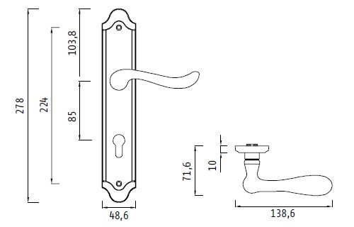 Межкомнатные ручки Archie GENESIS ACANTO BL. SILVER CL под ключ цилиндр