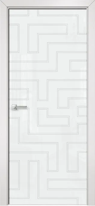 Дверь Оникс Арт, лакобель белый RAL0333 контурный витраж №12