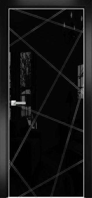 Дверь Оникс Арт, лакобель черный RAL 9005, контурный витраж №5