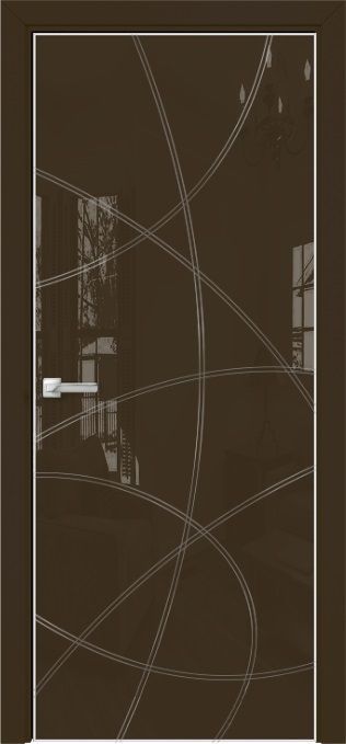Дверь Оникс Арт, лакобель коричневый RAL 8028, контурный витраж №6