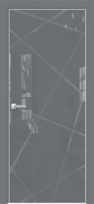 Дверь Оникс Арт, лакобель серый RAL 7040, контурный витраж №5