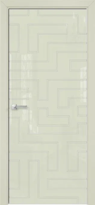 Дверь Оникс Арт, лакобель слоновая кость RAL 1013, витраж контурный №12