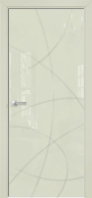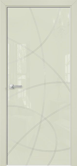 Дверь Оникс Арт, лакобель слоновая кость RAL 1013, витраж контурный №6