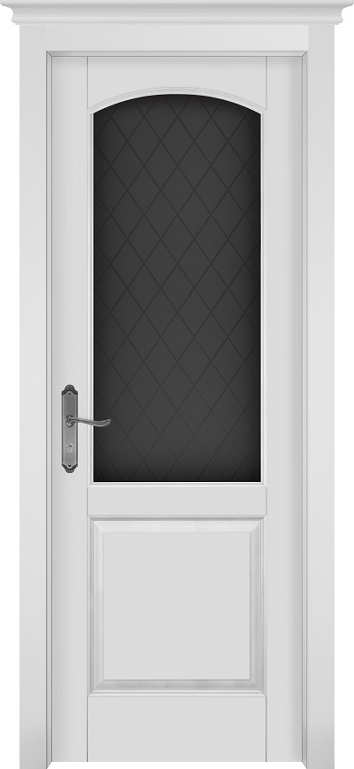 Дверь ДР массив ольхи Фоборг эмаль белая, стекло Квадро мателюкс с гравировкой