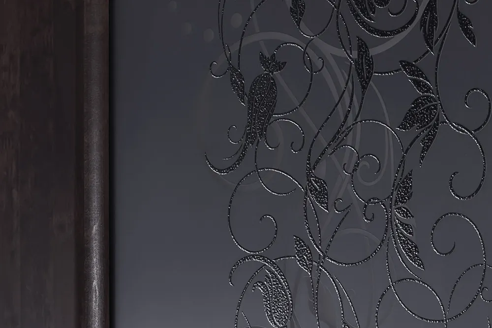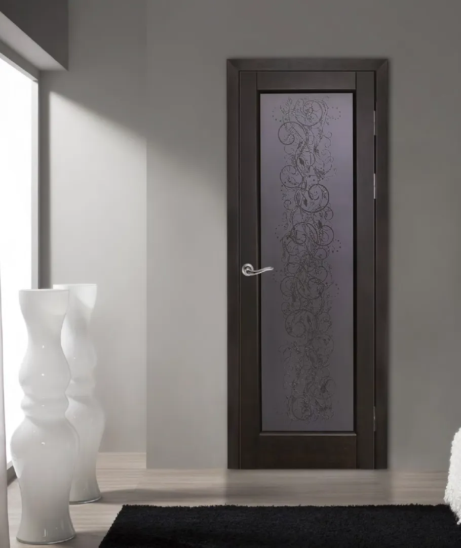 Дверь ОКА массив ольхи Витраж венге, стекло графит закаленное с наплавом