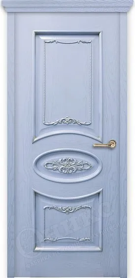 Дверь Оникс Эллипс с декором эмаль голубая по шпону ясеня, глухая