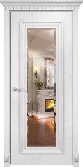 Дверь Оникс Мадрид 1 эмаль белая патина серебро, зеркало