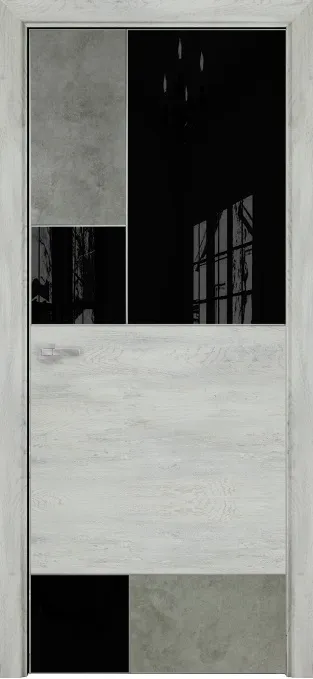 Дверь Оникс New York бетон светлый/лофт, глухая с вставкой лакобель RAL 9005.