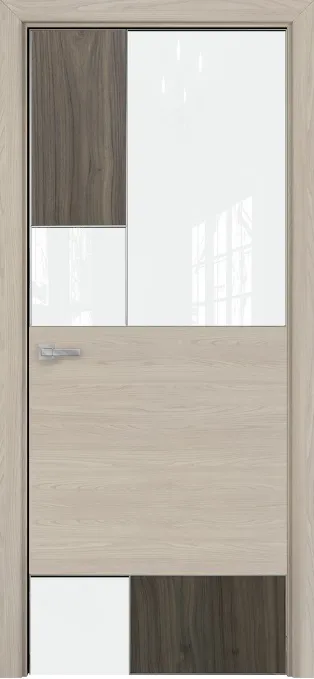 Дверь Оникс New York CPL noce effetto/CPL rubra elm, глухая с вставкой лакобель RAL 0333.