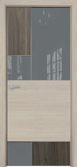 Дверь Оникс New York CPL noce effetto/CPL rubra elm, глухая с вставкой лакобель RAL 7040
