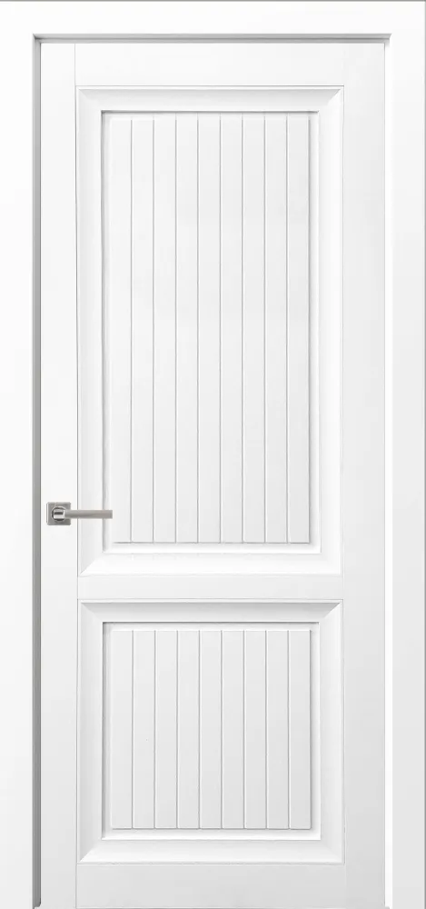 Особенность коллекции: фигурный широкий лаконичный багет, который полностью окутан декором и исполнен в одной плоскости с царгой и объёмная филёнка с вертикальной повторяющейся фрезой.