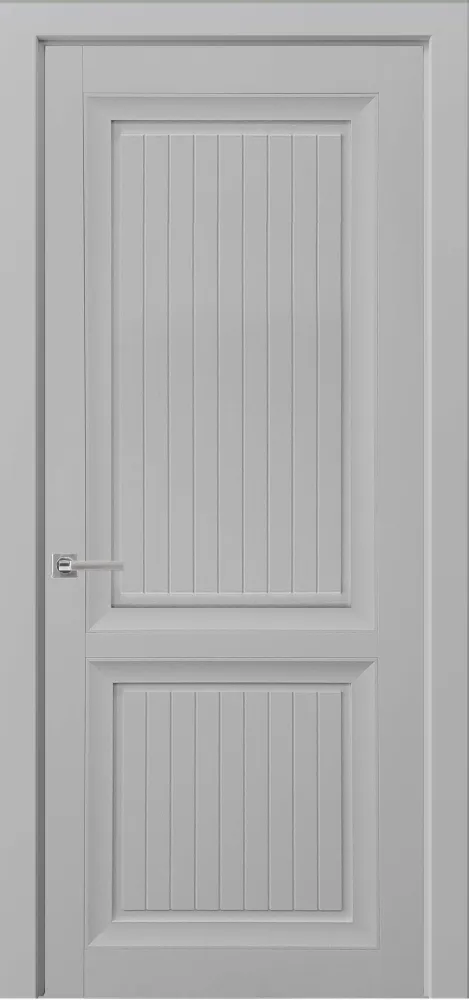 Особенность коллекции: фигурный широкий лаконичный багет, который полностью окутан декором и исполнен в одной плоскости с царгой и объёмная филёнка с вертикальной повторяющейся фрезой.