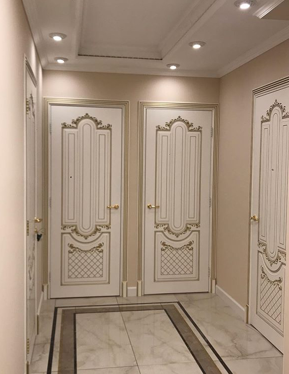 Дверь ДР Finezza Александрия 2 эмаль слоновая кость патина золото, глухая