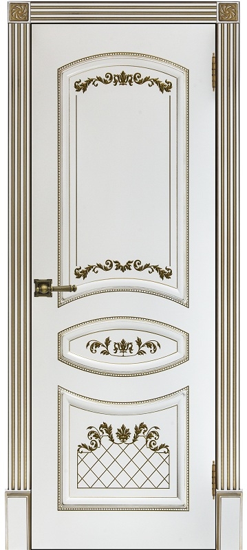 Дверь ДР Finezza Алина эмаль белая патина золото, глухая