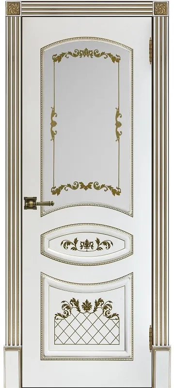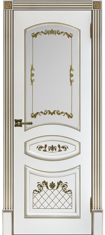Дверь ДР Finezza Алина эмаль белая патина золото, стекло