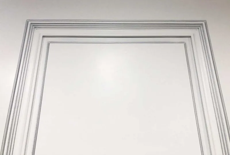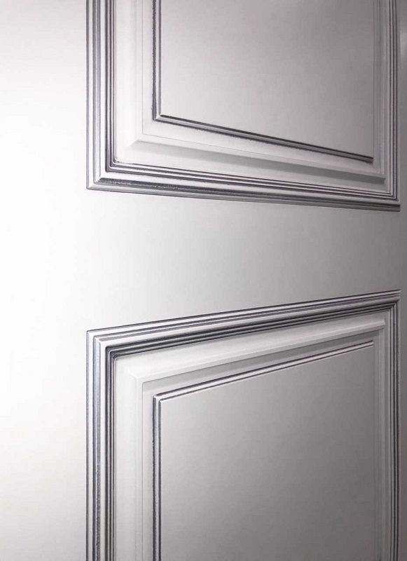 Дверь ДР Finezza Итало Багет-32 эмаль белая патина серебро, глухая