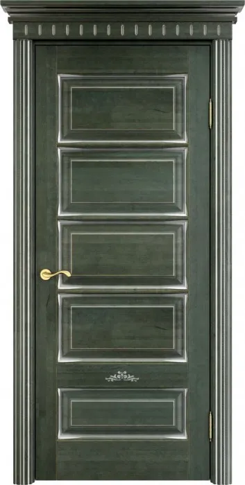 Дверь ПМЦ массив ольхи ОЛ44 зеленый с патиной серебро, глухая