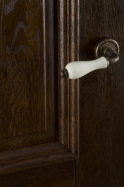 Поверхность двери дополнительно слегка брашируется - это помогает двери выглядеть полноценно живой, видна природная текстура и структура дуба.