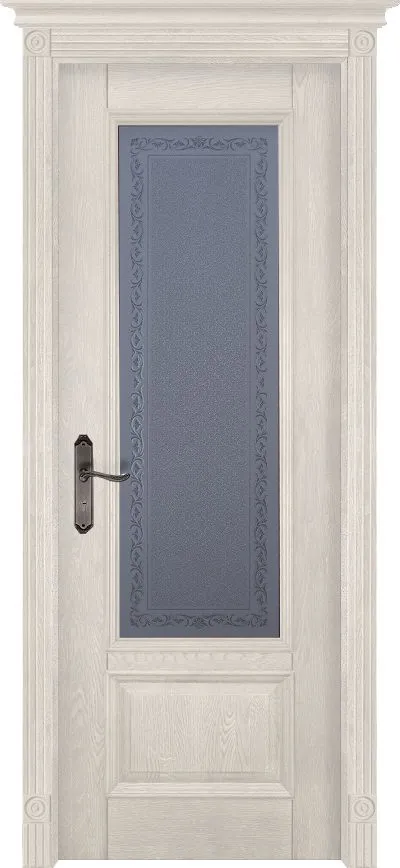 Дверь Ока массив дуба DSW сращенные ламели Аристократ №4 эмаль слоновая кость, стекло каленое с узором