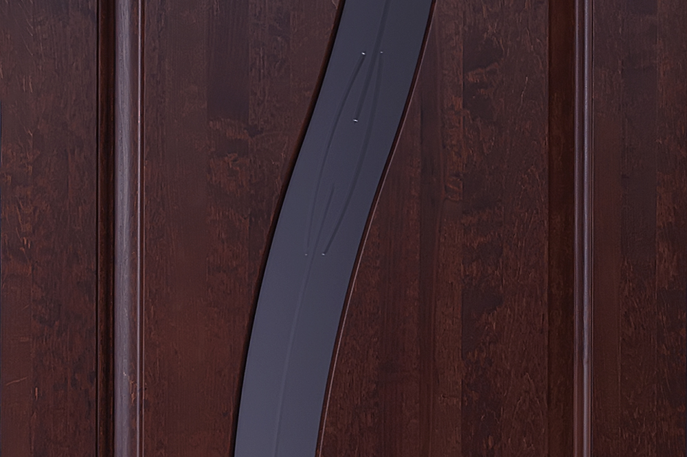 Дверь ОКА массив ольхи Соло махагон, стекло графит с фрезеровкой