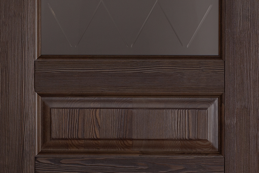 Особенность данной межкомнатной двери из массива сосны - это брашированная поверхность, явно выраженная глубокая 3D структура в сочетании с оттенками благородных твердых пород дерева.