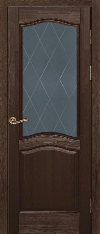 Дверь ОКА браш массив сосны Лео античный орех, стекло графит