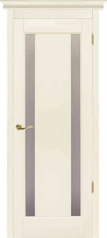 Дверь ОКА браш массив сосны Милан эмаль слоновая кость, стекло графит