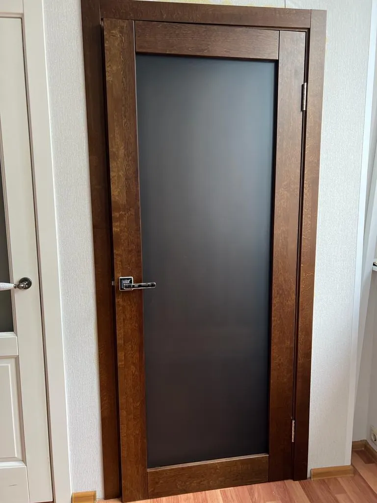 Дверь ОКА массив ольхи М-4 античный орех, стекло графит, выполненная из массива ольхи.