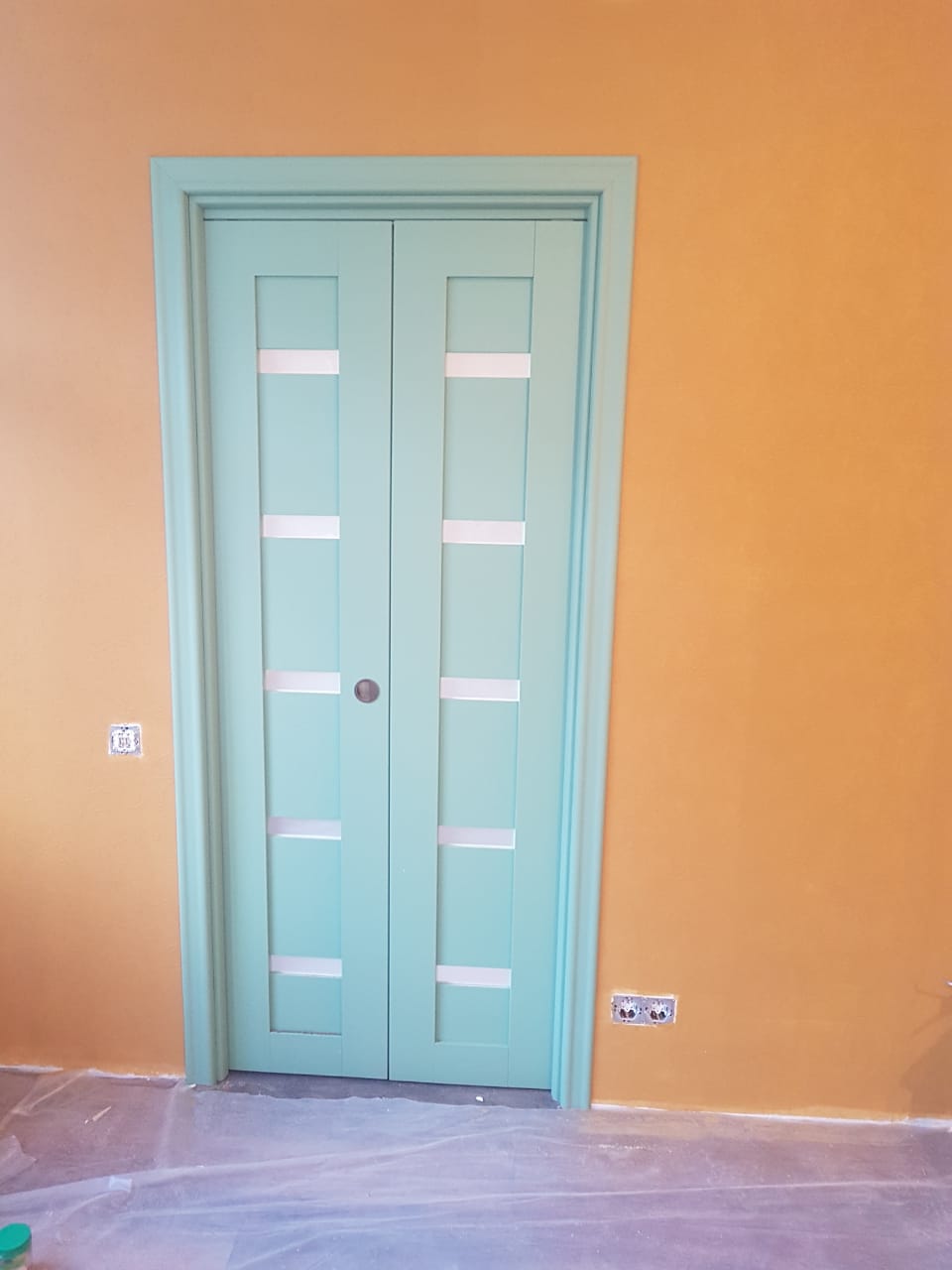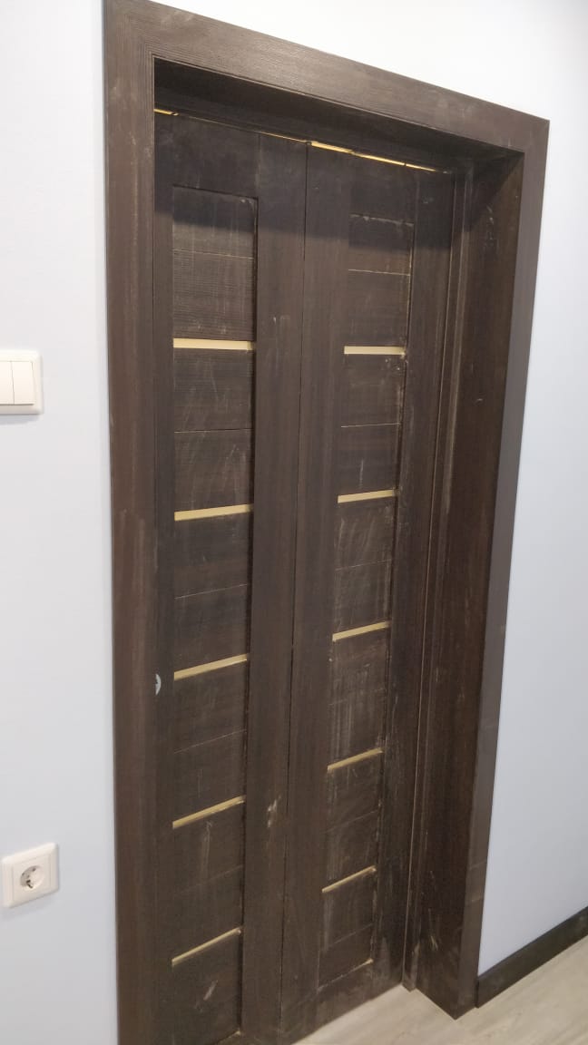 Симметричные двери-книжки при открывании складываются на одинаковые по ширине полотна. Асимметричные могут содержать две или более неодинаковых между собой частей.