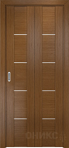 Дверь складывается в дверном проеме на 90 градусов, сужение просвета на 80-90 мм, за счет толщины двух полотен.