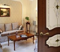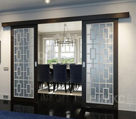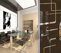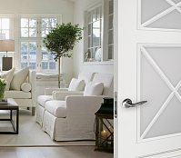 - Если вы решите сделать изготовление дверей на заказ, то у вас есть масса возможностей. В том числе вы можете видоизменять багетную обкладку, а еще обыгрывать стекло различными видами решеток.