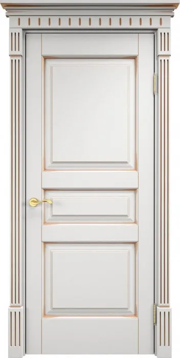 Дверь ПМЦ массив ольхи ОЛ5 белый грунт с патиной золото, глухая. Сборная филенчатая дверь из 100% массива ольхи, сорта Экстра.
