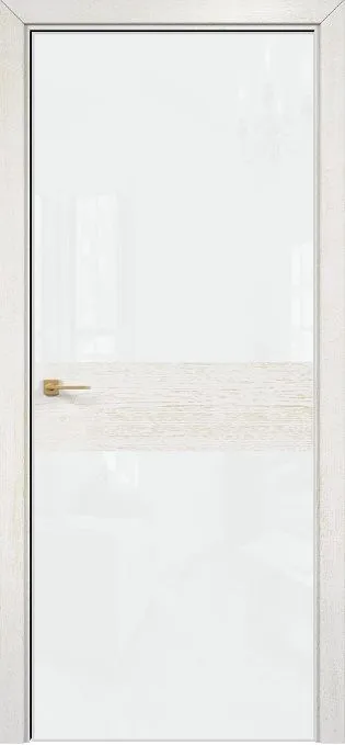 Дверь Оникс Соло 2 эмаль белая патина золото, глухая, Lacobel RAL 0333