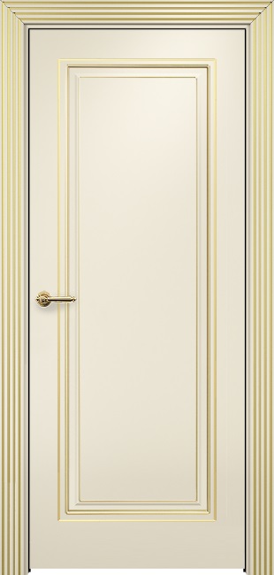 Дверь Оникс Турин фрезерованная №3 эмаль слоновая кость патина золото по контуру, глухая