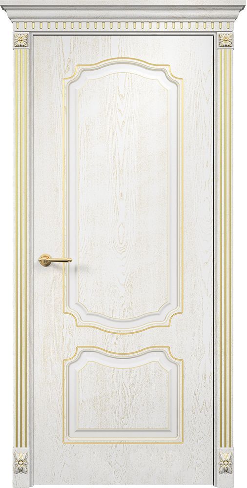 Дверь Оникс Венеция фрезерованная, эмаль белая патина золото, глухая