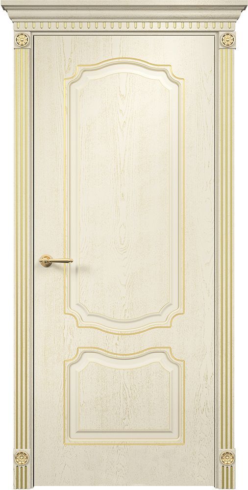 Дверь Оникс Венеция фрезерованная эмаль слоновая кость патина золото, глухая