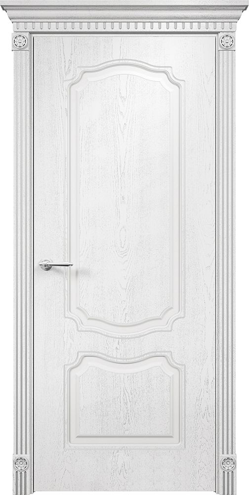 Дверь Оникс Венеция фрезерованная, эмаль белая патина серебро, глухая