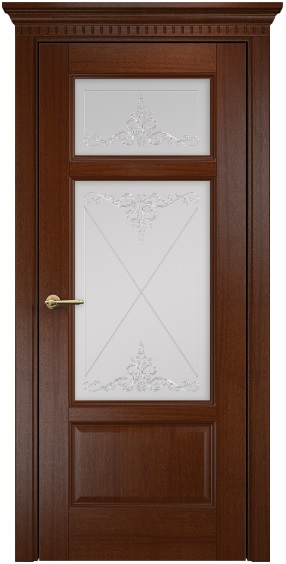 Дверь Оникс Италия 4 красное дерево, сатинат белый контурный витраж №1