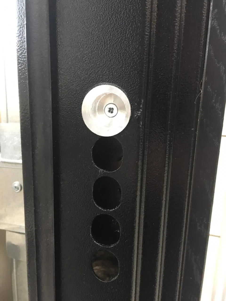 Скрытые противосъемные штыри - 3 шт, располагаются с торца двери в петлевой части.