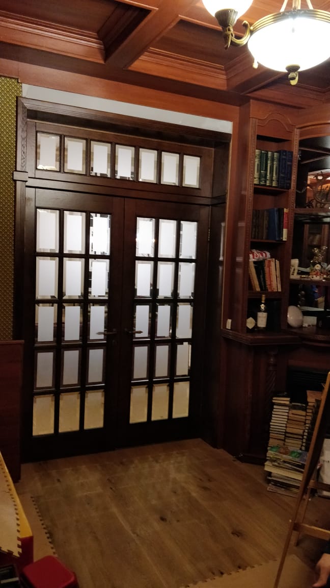 Двери с фацетом должны изготавливаться из прочного материала, способного выдержать вес тяжёлой вставки. Как правило, в их основе находится массив или его комбинация с МДФ.