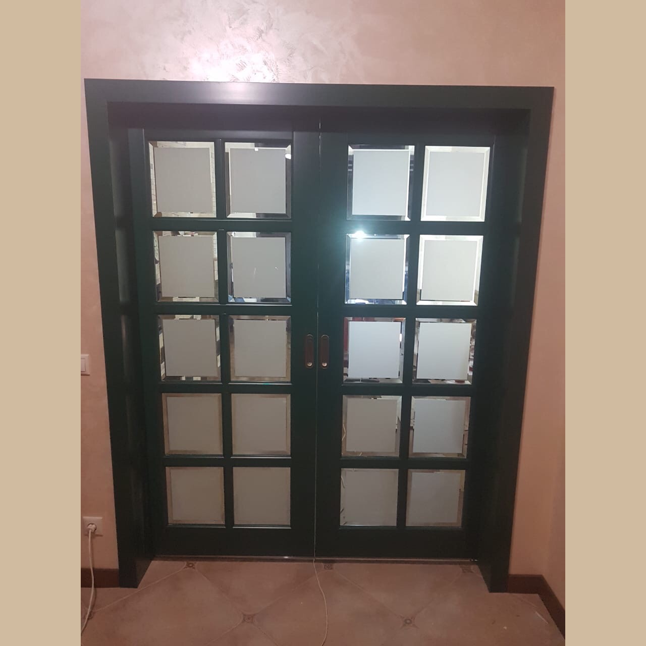 Изделия выполняются в различных оттенках — от белого до «венге». Особенно выгодно стеклянные вставки с фацетом смотрятся в традиционных интерьерах. Заслуживают внимания как распашные створки, так и визуально лёгкие двери-купе с подобным декором. Варианты с прозрачными элементами уместны на кухне и в гостиной. Конструкции с зеркалом подойдут для гардеробной.