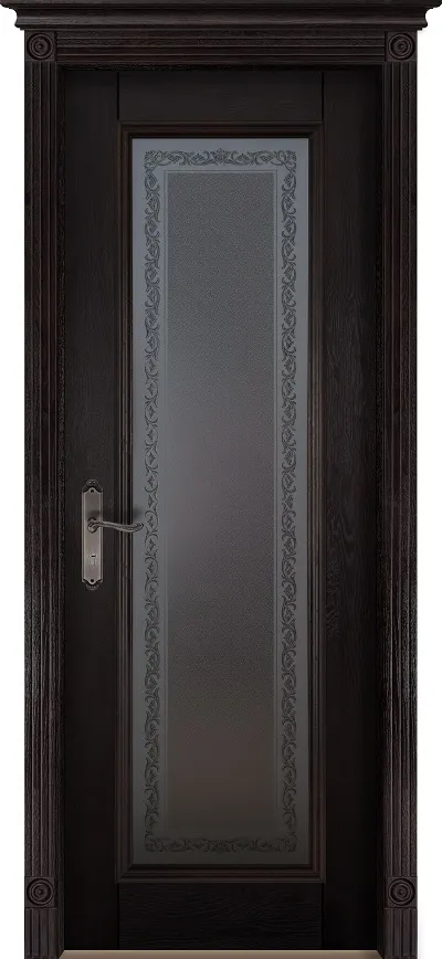 Дверь Ока массив дуба DSW сращенные ламели Аристократ №5 венге, стекло каленое с узором