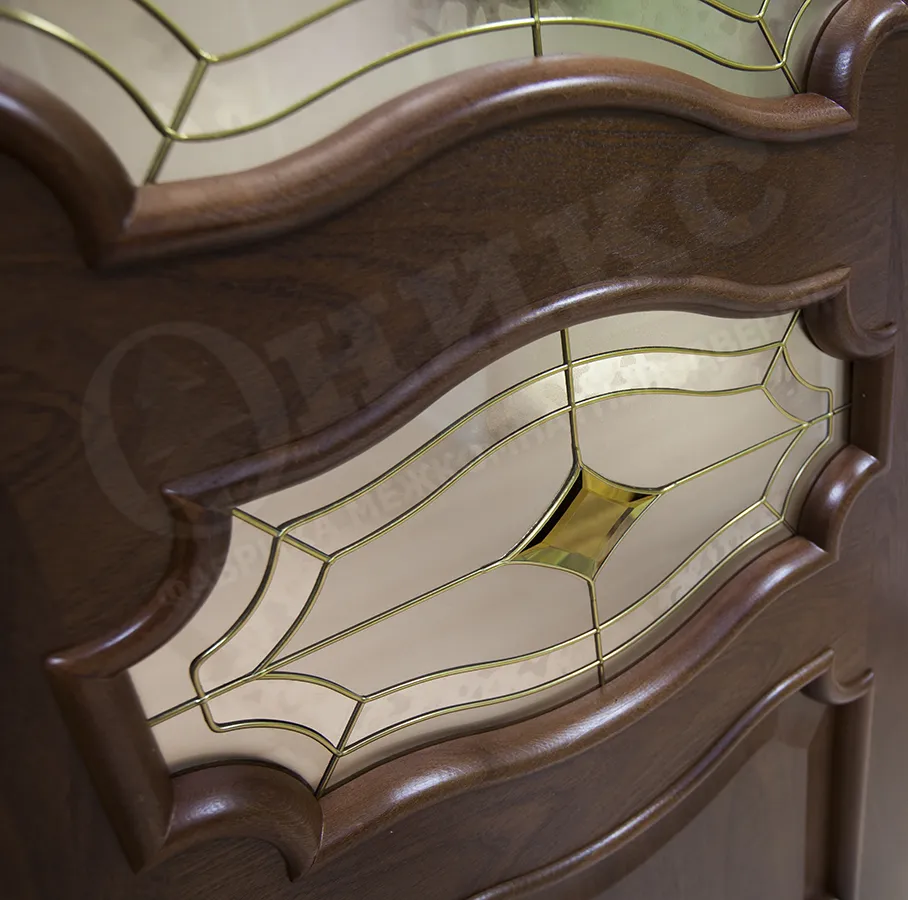 Дверь Оникс Барселона красное дерево, стекло "Витраж Бевелс"