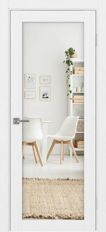 Дверь Эко 501.2 белый лед, зеркало с 2-х сторон